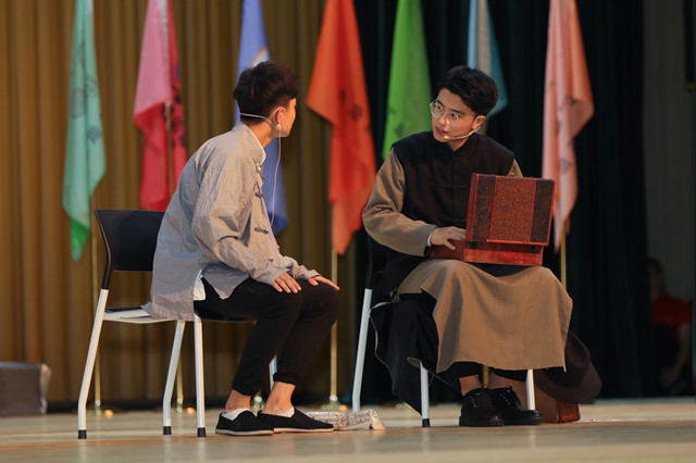 此次演出以“不忘初心 牢记使命”为主题。原创音乐剧《初心晨启·宣言》是由宁波大学梁卿教授音乐剧团队创作,根据党章守护者张人亚的故事改编,已经在宁波多地演出十余场。故事讲述了上世纪20年代一名普通的工人李四在张人亚的引导、感染下投身革命,成为一名坚定的共产主义战士,并帮助张人亚将第一部党章带回宁波老家保存的故事。在宁波大学“红色文艺轻骑队”学生的演绎下,音乐剧剧情跌宕起伏、高潮迭起,引起了现场观众的共鸣。除了原创音乐剧外,宁大学子还献上了歌曲、琵琶独奏等表演。