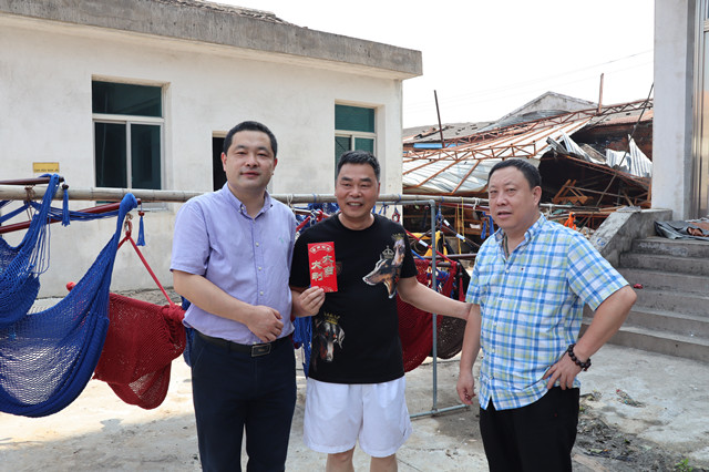 8月12日,乐清市侨商会秘书处在市委统战部部务成员、市侨商会副会长顾立文,市侨商会秘书长蒋向阳的带领下,先后走访慰问此次台风“利奇马”受损的乐清市雁荡山华侨工艺厂及浙江浙南机车业有限公司2家侨资企业。