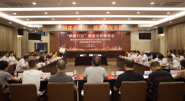 9月11日,金华市侨联、市建设银行联合举行“侨建八婺”银企合作座谈会暨全面战略合作签约仪式。金华市侨联主席蓝跃军,副主席王华德、王萍,市建设银行行长赵军、副行长徐晓元等领导出席活动。金华市侨商会20名侨商与市侨商会、市留联会负责人等参加活动。