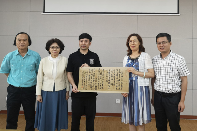 考察团成员林孝爽董事长向舟山市侨联赠送字幅