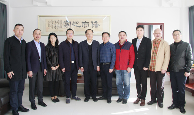 陈安主任(左五)等和金华市侨商会工作人员合影留念