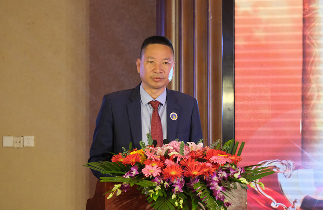 陶性于会长代表侨商会致祝酒辞,他感谢百忙中抽时间出席庆典的嘉宾和领导,感谢社会各界十年来对市侨商会的关心和支持,感谢全体会员一直以来热心参与商会工作和为商会作出积极奉献。
