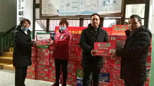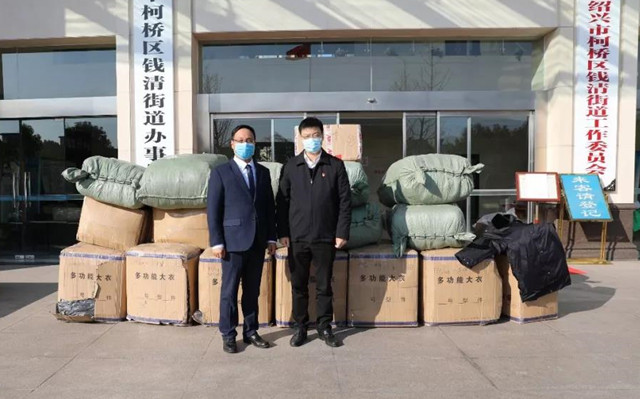 2月1日,通过公司领导层的全力协调、统筹和调配,金蝉公司紧急购买了军大衣350件(价值10余万元)捐赠给钱清街道防疫工作人员,为联兴村抗击流感前线的工作人员捐赠康师傅桶装方便面50箱,并向绍兴市人民医院捐赠消毒酒精20桶(400公斤),为共同早日战胜疫情做出金蝉人应有的贡献!