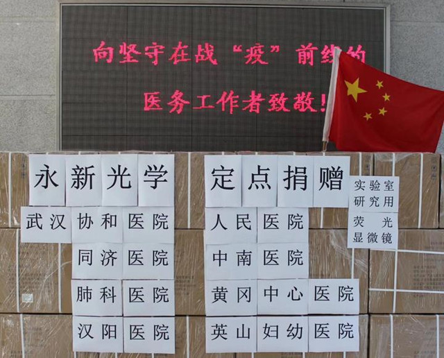 继大年初一将第一批实验室研究用荧光显微镜火速发往武汉外,2月5日,宁波永新光学有限公司向湖北多家发热门诊及定点治疗三甲医院,捐赠出价值83万元共计12台套病毒实验分析显微镜,用于抗击新型冠状病毒。