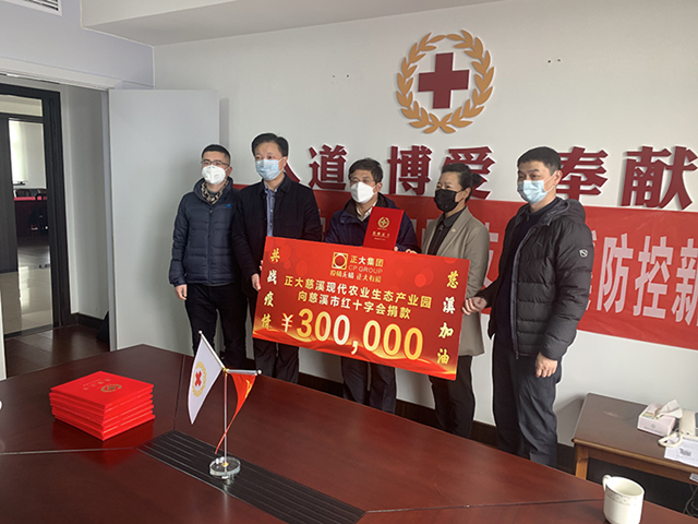 正大集团慈溪园区向慈溪市红十字会捐款,用于慈溪市各级学校的开学防疫工作