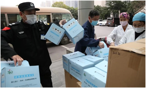 2月28日,绍兴市中心医院的工作人员正忙着搬运来自浙江宝仁和中科技有限公司捐赠的3万只医用口罩及50箱消毒湿巾,医院领导对前来捐赠口罩的柯桥区侨商会会长、浙江宝仁和中科技有限公司董事长吴建栋连声道谢:“谢谢,谢谢,这些物资来得太及时了”。