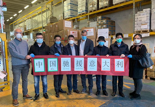 意大利当地时间3月14日上午11时,在都灵皮埃蒙特大区政府仓库门前,举行了浙江省首批驰援意大利防疫物资捐赠仪式,这批物资中包含了中南锦时置业集团子公司丽水锦侨置业有限公司(中南.布拉格小镇)捐赠的20万个口罩。