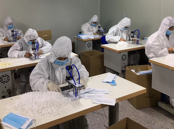 面对新型冠状病毒肺炎疫情的在全球漫延发展及企业复工复产的需求,防毒口罩防疫仍严重短缺,台州市侨商会副会长单位恒勃控股股份有限公司和台州市三隶生物科技有限公司当机立断,购买设备生产一次性口罩,目前,已获得有关部门生产许可的批复并投入生产。