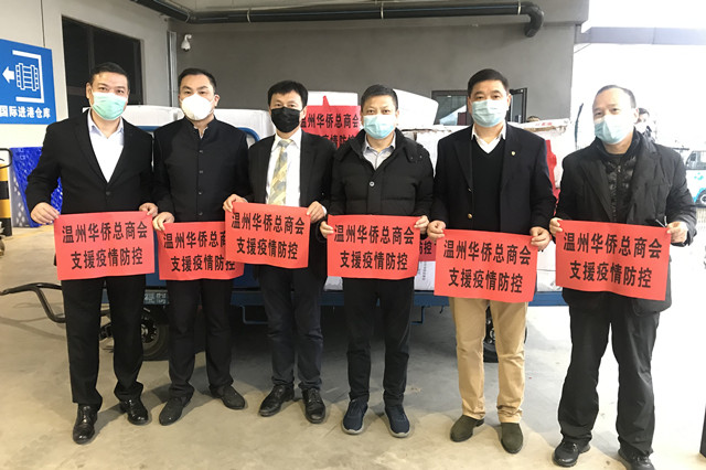 在温州市华侨总商会会长冯定献积极倡议和组织协调下,发挥海外华侨的优势,通过德国四个领区侨领们的积极配合,在短短时间内,华侨总商会在德国先后采购了5000套医用防护服。第一批2000套防护服即于2月9日下午运抵温州,支援温州肺炎疫情防疫工作;2月14日下午3点20分,第二批装满来自欧洲多国温州侨团、侨胞捐赠抗疫物资的空客货运包机降落在温州龙湾国际机场。此次包机运抵的防疫物资总体积近400立方米,共217万件,都是目前抗击新冠肺炎紧缺的口罩、防护服、防护眼镜、体温枪等医用物品。从意大利到比利时到温州,经过多方跨国接力的捐赠物资直接从温州机场分发到市疾控中心、附一医、附二医、瑞安市人民医院等40多个战疫一线的部门和单位。