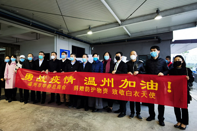温州市华侨总商会成员积极响应号召,捐款捐物总计达913000元人民币。(温州市华侨总商会)