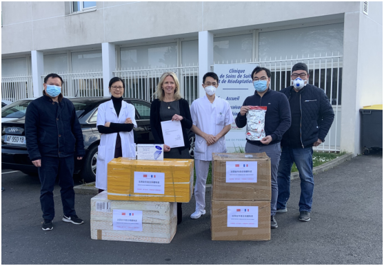 风雨同舟,并肩而行。3月31日,法国金华商会向大巴黎93省 Clinique Pierrefitte 医院捐赠2400只医用防护口罩和100套医用防护服,助力战斗在一线的医护人员全力救治重症患者。