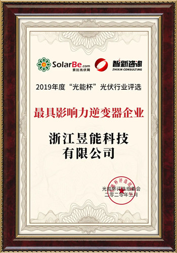 最近,由Solarbe索比光伏网主办的光能杯评选暨光伏行业首个线上颁奖盛典成功举办,昱能科技凭借优越的产品性能和强大的品牌实力,再次蝉联2019年度“光能杯”最具影响力逆变器企业大奖。