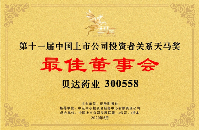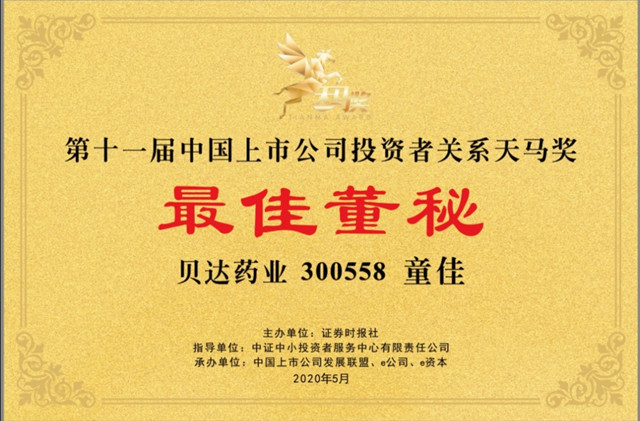 童佳女士作为公司董事会秘书,还兼任浙江上市公司协会第八届董秘专委会常务委员,积累了丰富的上市公司治理和运营管理经验,在业界具有卓越口碑。童佳女士表示,“天马奖”两大奖项是公众对贝达努力和成绩的认可,也是对贝达在资本市场中展示创新药企业良好形象的肯定。正值创业板改革并试点注册制之际,我们将深入学习和了解资本市场及行业最新动态,强化信息披露主体责任,努力提升团队专业水平,为打造规范、透明、开放、有活力、有韧性的资本市场贡献耕耘者的力量。(据“证券部”微信公众号)