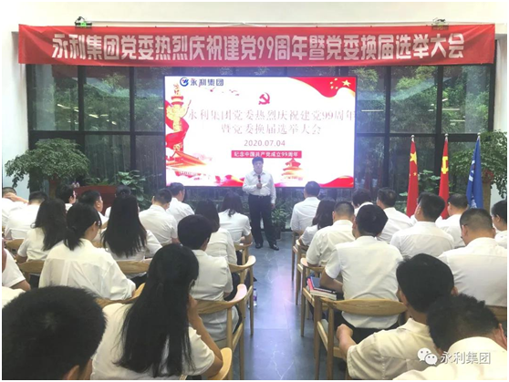 为庆祝中国共产党成立99周年,浙江永利实业集团有限公司党委于2020年7月4日在永利梦想书院召开新一届党委换届选举大会,会议由集团党委书记、柯桥区侨商会副会长周洋主持。永利集团目前共有中共正式党员108名,预备党员6名。