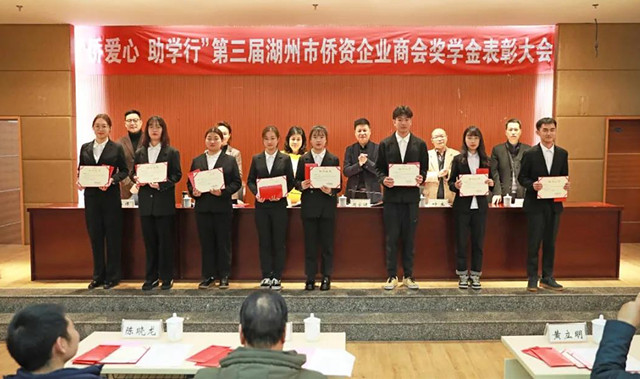 12月29日, “侨爱心·助学行” 湖州市侨商会第三届奖学金表彰大会在湖州职院举行。湖州市侨联主席、市侨办主任王青,市侨联副主席沈列,校党委书记周家健,市侨商会会长黄红,常务副会长兼秘书长徐伟等商会代表参加会议。