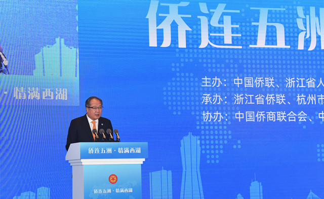 九、廖春荣会长等出席中国侨联、浙江省政府主办的“侨连五洲•情满西湖”活动。12月5日至7日,会长廖春荣,常务副会长陈乃科,副会长姚力军、杨宝庆、吴超英、林文清、杨贤彪、汪维佳、金锦明出席由中国侨联、浙江省政府主办的“侨连五洲•情满西湖”活动,与来自全球五大洲60多个国家和地区的近300名海外侨胞共叙侨界友谊、共谋合作发展。廖春荣会长代表中国侨商联合会、浙江省侨商会讲话,号召海内外广大侨商坚持新发展理念,拓宽战略视野,强化使命担当,以更加高涨的创新精神和创业热情,更加深厚的家国情怀,在积极投身自贸区建设、长三角一体化发展等国家重大战略行动中,进一步提升企业自主创新能力和核心竞争力,为国家和地方创新发展作出新的贡献。