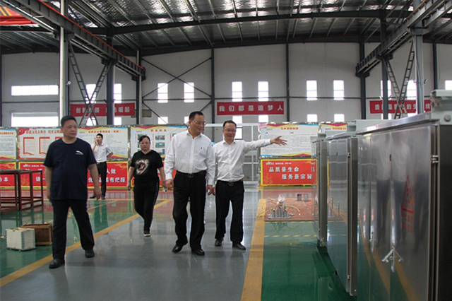 赵明皓一行驻足观看智能机器人折弯手作业,他肯定伊发“机器代人”的做法,他说,高精尖端设备进入现代制造业有助于创新驱动、转型升级。希望公司进一步发挥信息化优势,在数字化及人工智能等方面开展加速研发努力实现共跨越式发展,起好龙头企业的带头作用。他还对企业党建进车间的做法赞不绝口。