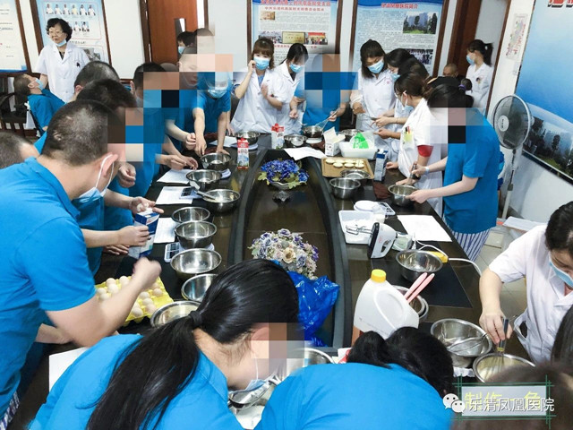 大家环绕会议桌而坐,专注聆听着老师对烘培知识的讲解,认真观看蛋糕制作,各种原材料的搭配比例,裱花制作,烤箱烘培等过程。随后,大家开始动手制作蛋糕,患者、护士纷纷合作,还有的在老师的带领下完成制作,整个现场欢声笑语,无限温馨。