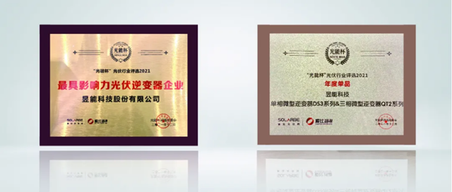 在同期举办的“光能杯”颁奖典礼中,昱能科技被授予“最具影响力光伏逆变器企业”奖,这是业内对公司品牌影响力、创新力的高度评价;昱能科技还因高可靠性的逆变器技术和出色的产品品质,其单相微型逆变器DS3系列和三相微型逆变器QT2系列也荣获了“年度单品”荣誉称号。