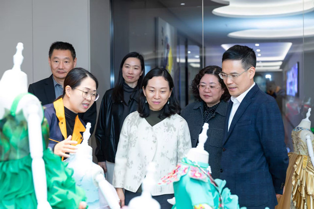 2025年12月19日,浙江省侨联党组书记、主席胡真舫(前左二)在侨企浙江依爱夫游戏装文化产业有限公司调研。