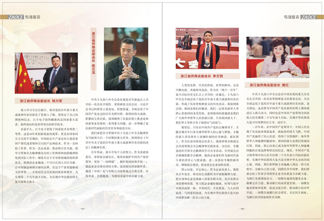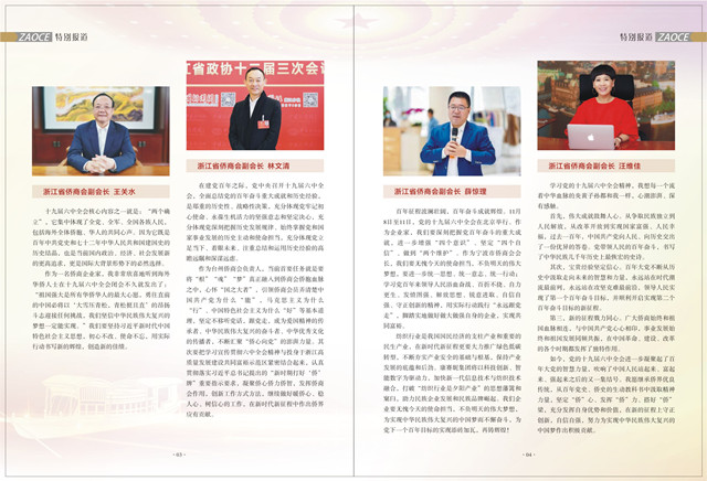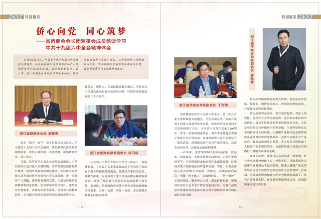 11月中旬,认真学习党的十九届六中全会精神,部分会长团成员、监事会领导学习体会在省侨联、省侨商会、浙商总会公众号和《浙江侨商》会刊上登载。
