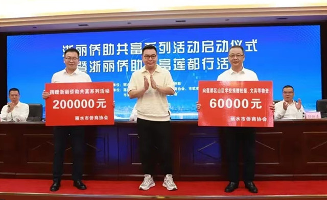 启动仪式上,丽水市侨商会捐赠20万元作为今明两年浙丽侨爱基金,首期向莲都区乡村学校捐助6万元物资。同时,结对莲都区雅溪镇上金竹村,以此促进侨商资源与上金竹村乡村振兴融合发展,推动共同富裕。(丽水市侨商会)