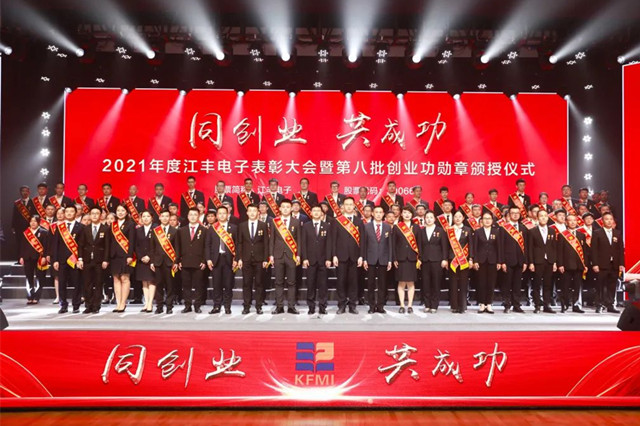 近日,浙江省侨商会副会长单位宁波江丰电子材料股份有限公司举行“同创业 共成功”2021年度表彰大会暨第八批创业功勋章颁授仪式,公司全体员工、关联公司代表和各方嘉宾汇聚一堂,日本、上海、北京、惠州、合肥、益阳、武汉等基地通过线上平台参加此次大会。
