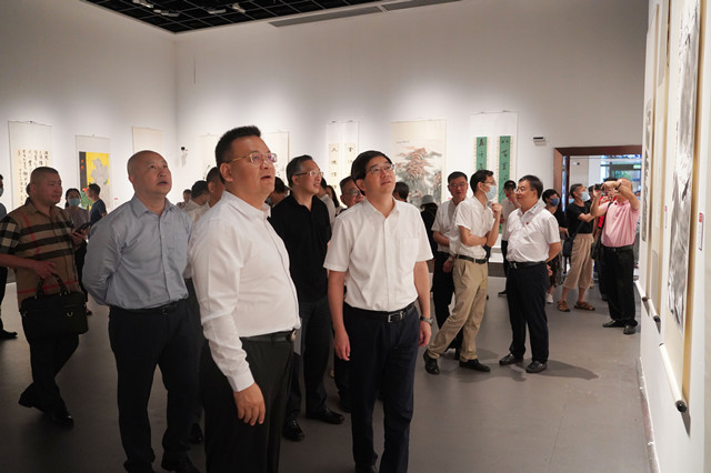 省委常委、统战部部长邱启文,省委统战部常务副部长徐旭,省政协港澳台侨和外事委主任童亚辉,省文联党组书记杨守卫,省侨联党组书记、主席庄莉萍,省贸促会党组书记、会长陈宗尧,省人大常委会副秘书长陈安,省委统战部副部长吴炳芳,省粮食和物资储备局党组成员、副局长李武杰,香港特区政府驻浙江联络处主任刘铭德以及著名书画家金甲镇、奚天鹰、何业琦等出席了开幕式。浙江省爱乡楷模、浙江省国侨书画院院长徐旭昶主持开幕式。