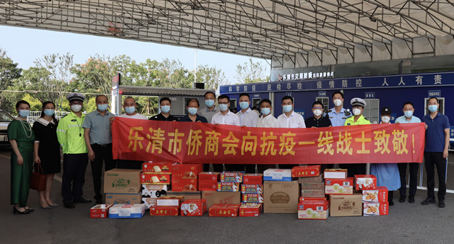 9月19日,乐清市侨商会会长李方西一行随同市委统战部副部长、市侨办主任周胜海赴北白象高速出口防疫卡点慰问疫情防控一线战士,并为他们送上慰问品。市侨商会常务副会长倪兴川,副会长陈高林、倪洁、陈新、吴金龙、马伟军,副监事长张星权,秘书长蒋向阳,副秘书长黄灿华、高洁玉、黄海霞以及秘书处成员共15人参加活动。