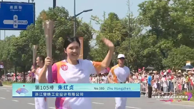 永康市侨商会副会长、浙江斐络工业有限公司总经理、斐络(省级)重点工业企业设计院院长朱红贞担任金华站第105棒火炬手,高擎“薪火”,英姿飒爽,圆满完成传递使命。