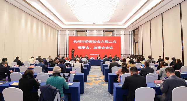 12月7日,杭州市侨商会六届三次会长团会议暨六届二次理事会、监事会会议在杭召开。杭州市委统战部副部长林国蛟、市侨办等领导出席会议。浙江省侨商会秘书长姜敏达、副秘书长章幼红到会,代表省侨商会对会议顺利召开表示热烈祝贺。会议由执行会长丁德坤主持。