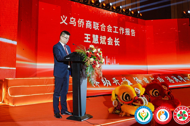 义乌市委常委、统战部部长贾以鸣出席大会并致辞。他充分肯定了义乌侨商联合会、义乌市侨爱公益促进会、义乌港澳总商会在以侨引侨、品牌出海、侨助开放、侨爱公益等方面发挥的积极作用。他希望三个商会持续擦亮“侨聚义乌”品牌,主动宣传义乌、推介义乌,讲好“义乌故事”;持续提升“侨助开放”品牌,全面助力义乌市场“品牌出海”行动;持续做强“暖侨护侨”品牌,优化提升营商环境,打造侨界最优创新创业环境,为“打造典范、再造辉煌”贡献更多侨界力量。