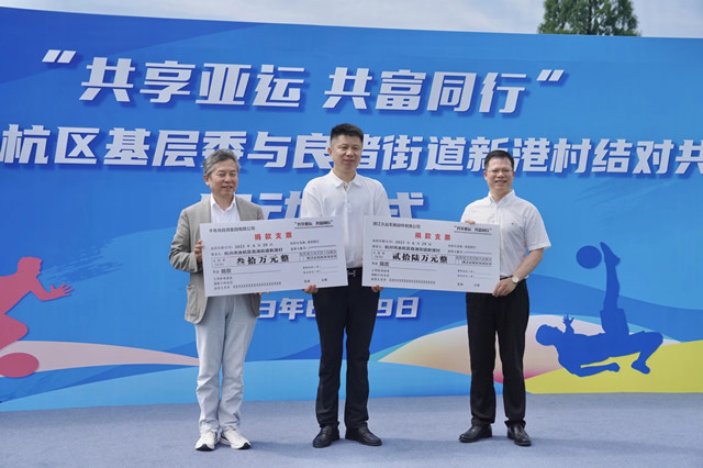 值得一提的是,2021年,在余杭区委办牵头下,千年舟与新港村开展“一村社一机关一企业”党组织结对共建;2023年,千年舟集团董事长陆铜华、浙江久运车辆部件有限公司副总经理俞勤松作为余杭民建会员企业代表向新港村进行捐款,积极促进村民抱团发展,充分发挥党外人士力量和党派资源,为新港村“未来乡村”建设注入强有力的统战力量。
