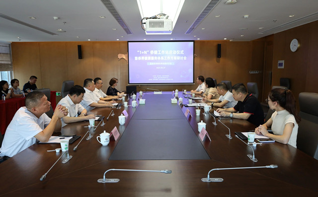 盛夏侨心聚,健康护侨行。8月24日,由温州市侨办、温州市华侨总商会医疗分会精心打造的“1+N”侨健工作站启动仪式暨侨界健康服务体系工作方案研讨会在世界温州人家园顺利举行。温州市委统战部副部长、市侨办主任周燕伟,温州市华侨总商会会长夏烈,法国华侨华人会主席蔡君柱,世界温州人杂志顾问委员会召集人黄海滨,温州和平国际医院院长薛志辉、学术院长吴建胜,中国银行温州市分行华侨服务中心黄莉颖,市留联会党支部秘书长鲍海珍等出席会议。会议由温州市华侨总商会医疗分会会长、市侨联兼职副主席卢琼主持。
