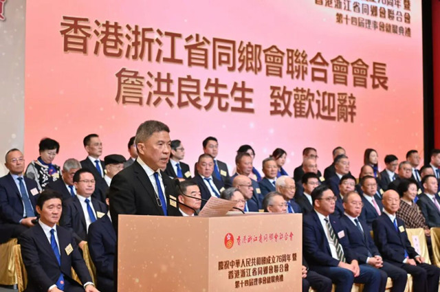 陈国基在致辞中表示,香港与浙江一直有紧密的联系,很多早年间来香港打拼的浙江乡亲和企业家为香港战后的工业发展带来资金、技术和劳动力,为香港经济起飞打下坚实基础。浙联会多年来积极参与社区建设,举办各类活动,让市民了解家乡文化与传统;也组织义工队,关心乡亲和弱势群体,更承办地区关爱队,在社区提供贴心服务,在紧急时刻及时支援有需要居民。浙联会亦是连接浙江与香港的重要桥梁,组织交流活动,推动企业合作,开展多个青年交流项目。他强调,今年是谋划国家“十五五”规划之年,香港是国际金融、贸易和航运中心,而浙江是国家经济大省,两地加强合作,对配合国家发展具有重要意义。今年首次举办的“浙港合作会议”标志着两地合作踏上新台阶,特区政府期望与浙江继续携手深化合作,优势互补,共同把握国家发展机遇,为国家改革开放和中华民族伟大复兴作出更大贡献。