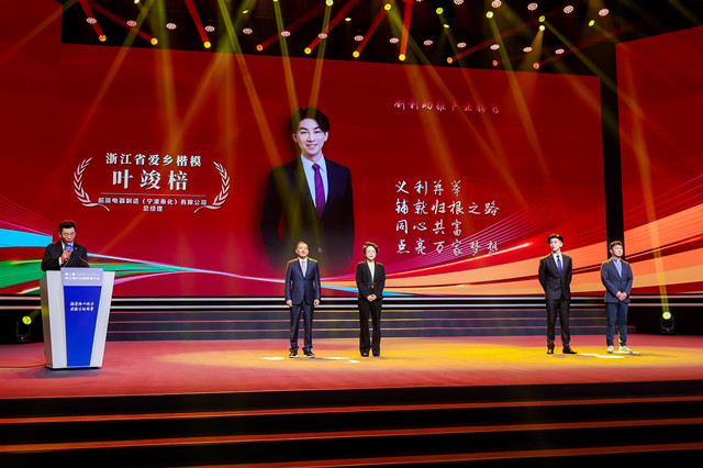 11月27日,由浙江省侨办、浙江省侨联、浙江海联会联合主办的第二届浙江海外社团联谊大会在浙江省人民大会堂隆重举行,浙江省侨商会青委会副主席、宁波市侨商会常务副会长叶竣棓荣获“浙江省爱乡楷模”荣誉称号,以表彰其多年来情系桑梓、慷慨奉献,为浙江及宁波经济社会发展所作出的突出贡献。