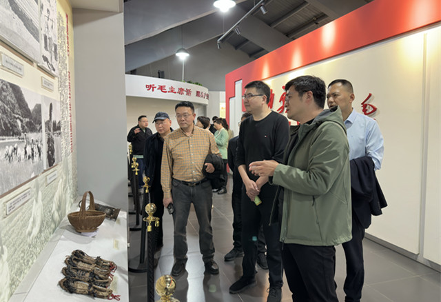 骆越峰会长一行率先走进富盛镇上旺村,实地考察周清黄酒、蓝珀咖啡等特色业态,在参观上旺精神陈列馆的过程中,沉浸式感悟“八把山锄创大业”所蕴含的自力更生、艰苦奋斗的精神内核,为投身乡村建设凝聚精神力量。