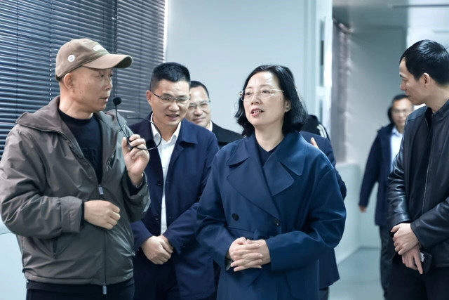温州市农业农村局科技教育处处长赵佩欧等陪同调研。(完)