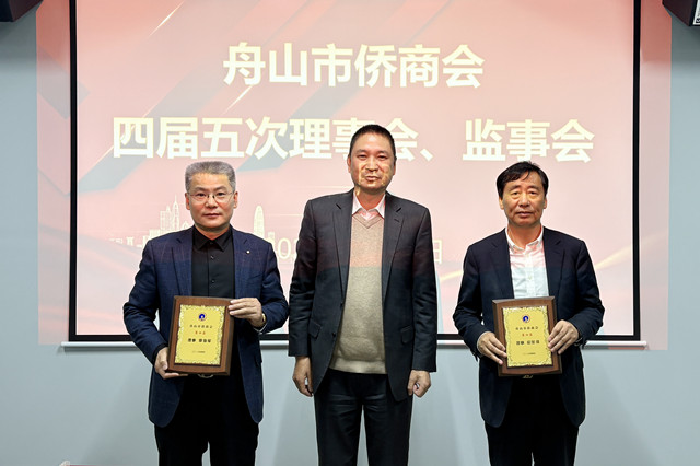会议现场,陶性于会长为新增补的理事授牌。他们表示,能够成为舟山市侨商会的一员,加入这个温暖的侨界大家庭,感到无比荣幸与自豪。未来将珍惜理事身份,积极参与商会各项活动,发挥自身企业优势,与各位侨商同仁携手并肩,为商会发展出谋划策,为侨界事业添砖加瓦,助力舟山经济社会高质量发展。