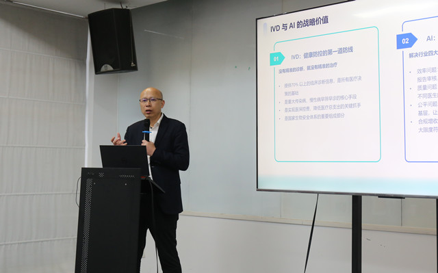 省侨商会副会长、中翰生物董事长周旭一作为28期培训班学员代表致欢迎辞。他表示,中翰生物始终致力于以科技创新服务民生健康,期待以此次交流为桥梁,与各位学员共话产业发展,共同为健康杭州建设贡献智慧与力量。随后,周旭一作《新质生产力赋能健康中国:体外诊断产业创新与AI应用实践——以杭州为例》课程分享。他从新质生产力的时代内涵出发,系统梳理了IVD产业的发展大势与核心痛点,并结合杭州“数字经济第一城”与“生命健康千亿集群”的双高地优势,分享了中翰生物在技术平台、慢病AI、产业生态等方面的差异化探索。课程不仅展现了企业以科技创新驱动健康产业升级的实践路径,也为学员们理解“新质生产力落地民生”提供了鲜活的杭州样本。