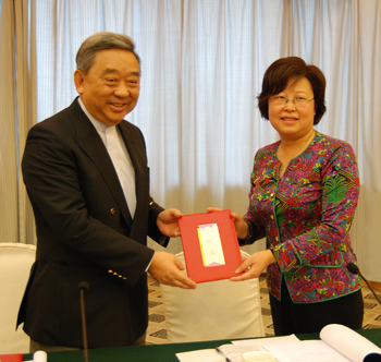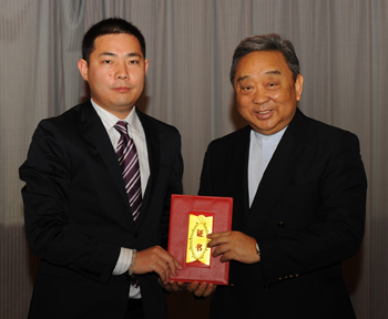 曹其镛会长向新当选的金罕岗理事颁授证书