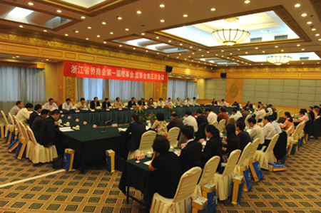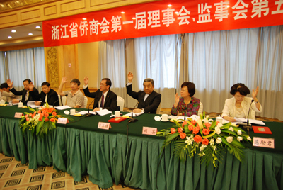 浙江省侨商会第一届理事会、监事会第五次会议于2010年10月10日在杭州新侨饭店召开。省侨商会理事、监事出席会议,省侨商会维权委员会成员和部分市、县侨商会领导或秘书长列席会议。