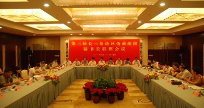 为加强长三角地区侨商组织之间的交流和合作,探讨侨商组织在新形势下面临的主要任务,推动侨商组织健康、顺利发展,由上海市侨商会、浙江省侨商会、江苏省海外交流协会、安徽省侨商会联合主办,江苏省海外交流协会承办的第三届长三角地区侨商组织秘书长联席会议,于2011年7月21日至22日在南京召开。江苏省侨办副主任、江苏省海外交流协会副会长孙彬,江苏省海外交流协会秘书长贾文华,浙江省社会组织促进会副会长、省侨商会维权委员会副主任贺宝健,浙江省侨商会秘书长姜敏达,上海市侨商会秘书长计宁,安徽省侨商会会长方徽琴,安徽省侨商会秘书长陈小栋等和江、浙、沪、皖三省一市50多位侨商组织秘书长出席会议。
