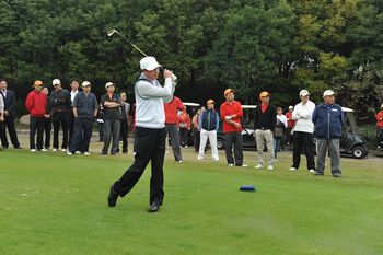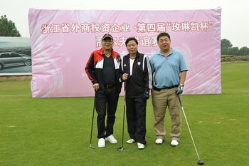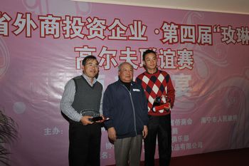 石广生部长(中)为净杆第一名获得者杨江良(左一)颁奖