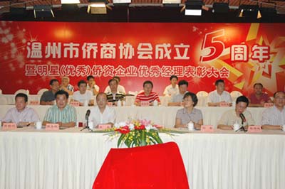 8月21日,温州市侨商协会举行成立五周年庆典暨明星(优秀)侨资企业、优秀经理表彰大会。