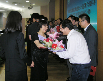 张浚生(左八)、吴晶(左七)与海归导师合影(左四为林东、右二为郭羽、右六为李慧、左二为姚纳新)
