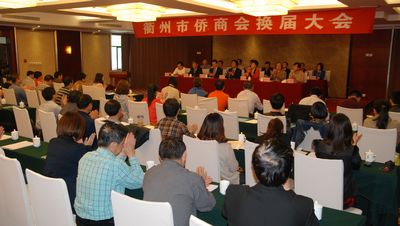 4月28日,衢州市侨商会换届大会在衢州帝京大酒店举行。衢州市副市长朱建华,市政协副主席、市侨联主席吕玉茹,市政府副秘书长童子侃,市外侨办主任朱耀荣,市外侨办党组副书记、副主任许立,市侨联党组书记、副主席李钦新,省侨商会常务副秘书长姜敏达以及有关部门负责人、侨资企业代表100多人出席换届大会。