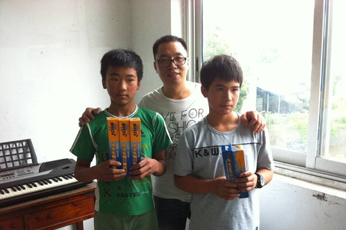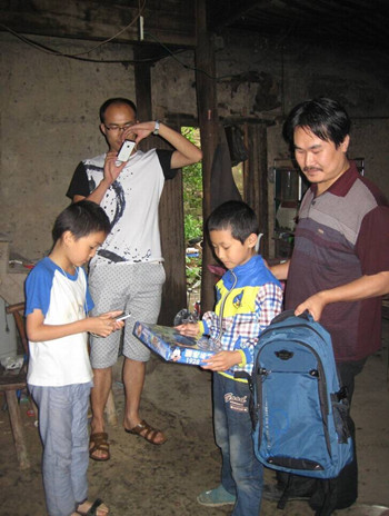 党支部领导给中心小学学生捐助书籍和乒乓球等体育用品