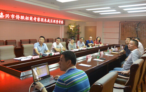 近日,嘉兴市侨商会常务副会长蔡国伟、蔡旭艇,副会长钱志荣,副监事长蒋嘉平等在市委统战部副部长、市侨办主任、市侨商会顾问浦金英的带领下赴安徽芜湖镜湖区考察投资环境。芜湖市侨联副主席靳艳,芜湖镜湖区委书记贺东,区委常委、副区长吴文斌,区政协副主席、统战部长甑长海等领导会见了考察团一行。