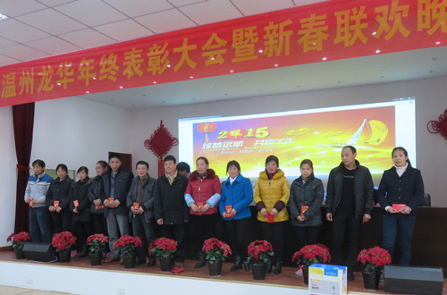 2月12日,侨企温州龙华日用电子有限公司举办了2014年终表彰大会,公司董事长周明幸对2014年的工作进行总结,对公司今后的生产量、业务量及公司的未来发展方向提出了要求和希望。大会对各部门优秀员工、先进团队、先进班组、龙华十年员工等奖项颁发了奖状及奖品,并对贫困员工发放困难补助金。会后还举办了精彩的新春文艺汇演。(乐清市侨商会)